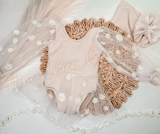 Daisy Mesh Skirted Leo with Poofy Sleeves