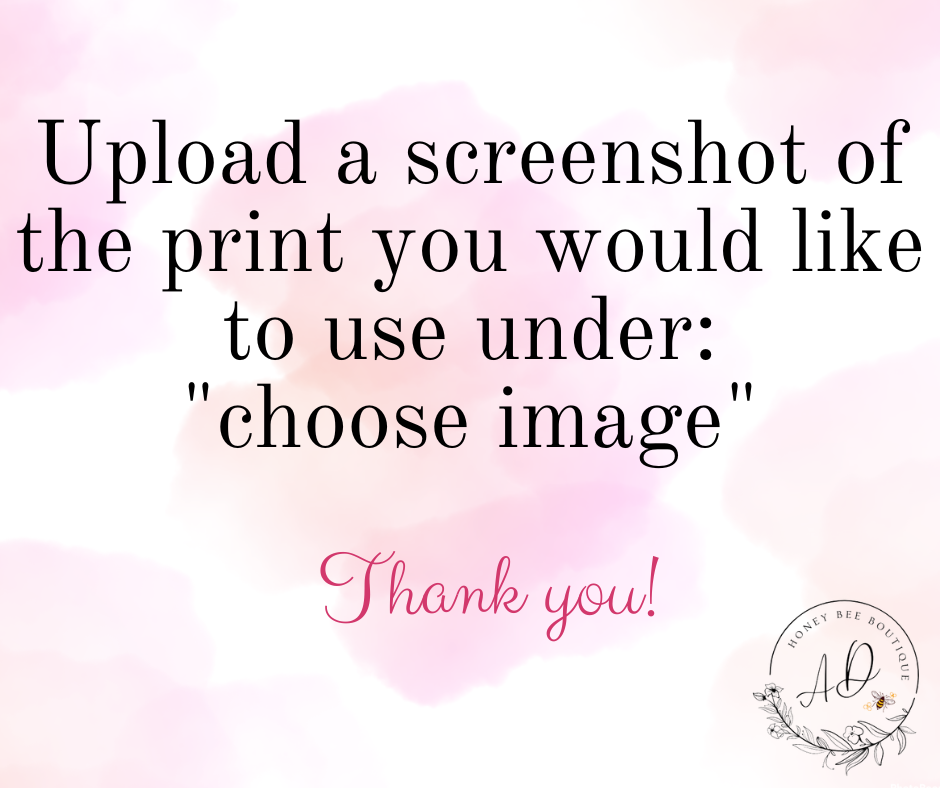 Most print options are posted on the Facebook group linked down below. Save the picture you are wanting to be printed, and upload it through email to honeybeeboutiquead@gmail.com or message Adrienne Davis through the group directly with your request.